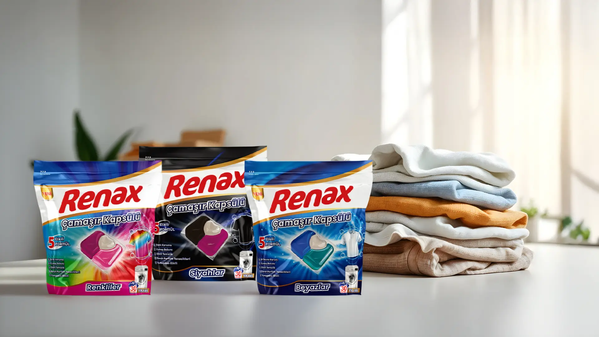Renax gives your laundry the care it deserves with its powerful formula and specially developed capsule technology.
